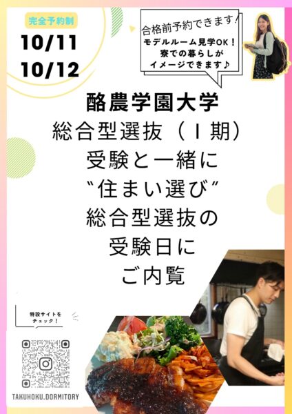 2025.10.11 2025.10.12 酪農学園大学 総合型選抜(Ⅰ期)の受験日 同時開催 ご内覧会