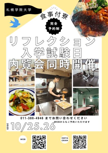 2025.10.25-26 総合型選抜リフレクション入学試験 札幌学院大学 学校指定寮 内覧会予約受付