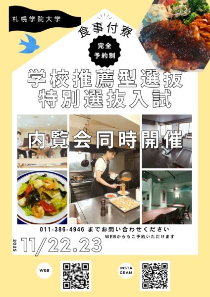 2025.11.22-23 札幌学院大学 学校推薦型選抜・特別選抜の試験日 同時内覧会開催