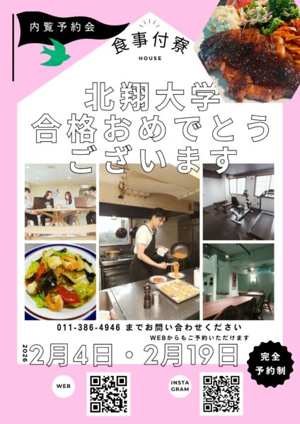 【合格おめでとうございます】北翔大学 2月実施 入学試験 合格者の皆様へ:学生寮「拓北」入居ご案内と内覧会のお知らせ